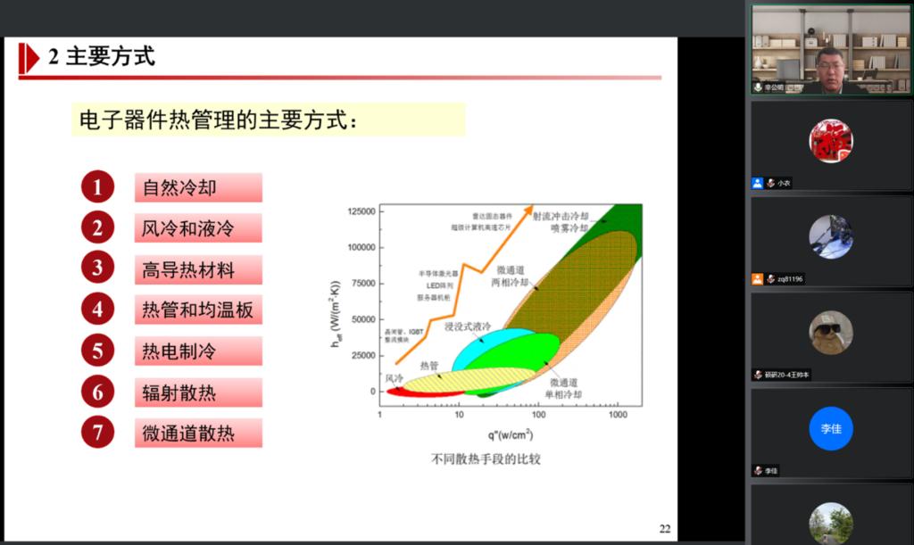 点击:2022年5月13日,山东大学能源与动力工程学院党委书记辛公明教授,应邀在线为捷报比分下载 师生作题为“电子器件热管理技术”的学术报告。会议由院长张强主持,捷报即时比分 、能源学院、材料学院等200余名师生参加了报告会。