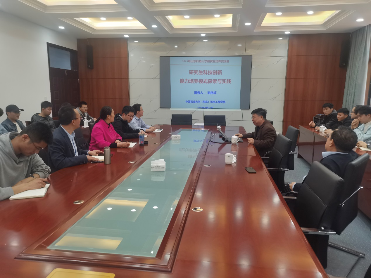 点击:4月27日下午,中国石油大学(华东)机电工程学院院长刘永红应邀到捷报即时比分 作题为《研究生科技创新能力培养模式探索与实践》的学术报告。山东科技大学副校长周东华、捷报即时比分 院长张强及学院部分师生参加了报告会,报告会由张强主持。