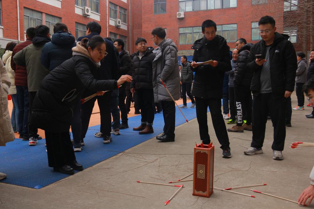 本次运动会共设有投壶、跳绳、门球、踢毽子和拔河五个比赛项目,充分将趣味游戏与体育锻炼相结合,促使大家在运动中获得乐趣,增强体魄。尽管寒风刺骨,但依旧抵挡不住教职工们的热情,他们的呐喊声如雷贯耳,他们的欢笑声此起彼伏。