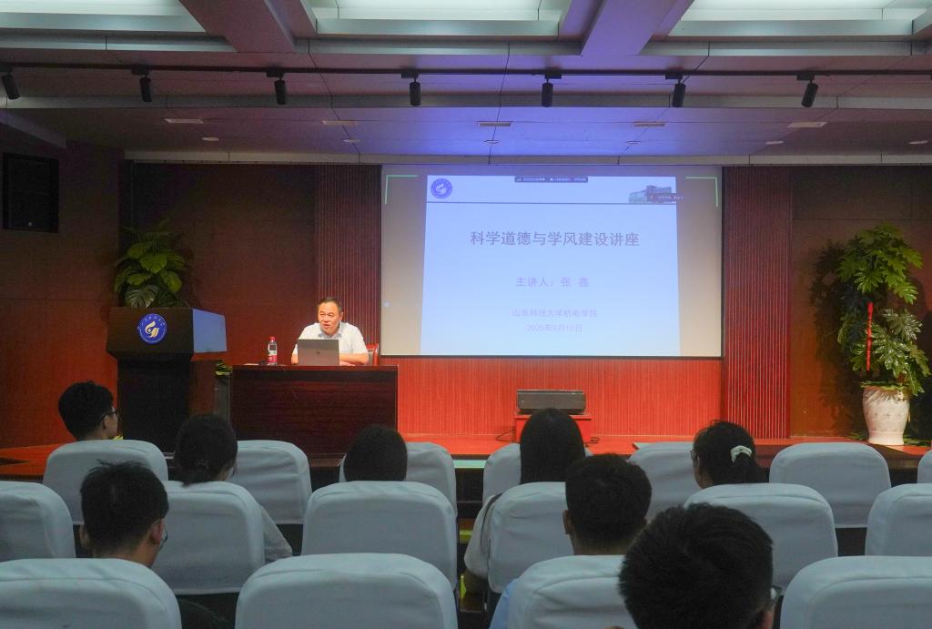 副院长张鑫教授以《科学道德与学风建设教育》为题,为新生带来一场深刻的专场讲座,为其学术生涯筑牢道德根基。张鑫结合科研工作实际需求,从科研诚信的重要性切入,通过剖析典型学术不诚信案例,直观解读学术不端行为的具体表现与严重危害,并详细介绍学术规范的核心标准。他恳切告诫新生,自入学起便要恪守学术道德,不断提升诚信意识与学术鉴别能力,坚决避免触碰学术红线。这场贴合新生成长需求的讲座,有效帮助新生掌握学术规范、强化诚信理念,为引导其遵守学术准则、坚守科研底线、抵制学术不端行为发挥了重要作用。
