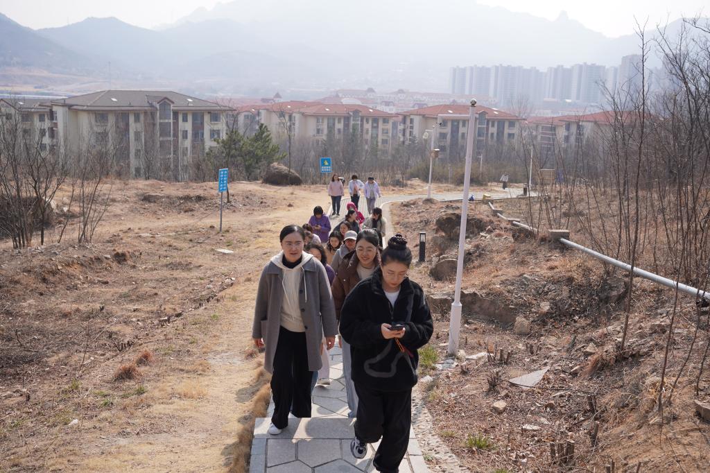 蜿蜒山道上,大家结伴而行、相互搀扶、彼此鼓励,一边驻足观赏山间春日景致,感受草木萌发的生机与活力,一边畅谈工作心得、交流育人经验,在攀登过程中亲近自然、陶冶情操、增进情谊。
