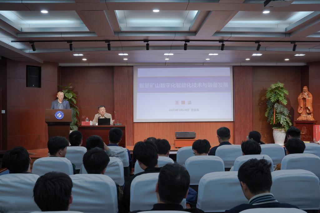 王国法院士从能源矿业数智化转型与智慧矿山发展、智慧矿山数字化智能化基础研究进展、矿山大模型与应用场景专属模型开发、矿山智能化系统中的AI机器视觉技术以及新时代矿业人才成长与职业发展自信等五个方面讲述了智慧矿山数字化智能化技术与装备发展的基本情况和取得的成果,指出了我国能源安全与能源产业转型面临新形势新要求,以及煤炭智能安全高效绿色开采是保障国民经济高质量发展的重大战略需求。他介绍了煤炭产业数字化转型与煤矿智能化建设新进展、人工智能AI赋能现代能源与矿业新质生产力发展情况,以及多种生产应用场景下的矿山专属模型;煤矿智能化建设是煤炭产业数字化转型的基础和核心要素,“数字产业化”与“产业数字化”正深度赋能能源矿业产业高质量发展。指出产业数字化转型涉及全流程多方面,要抓住机会构建产业数字化技术标准体系,推进信息基础设施迭代升级,建立以数字化为基础的智能化赋能体系。最后,王国法院士分享了自己求学和工作经历,并向广大师生送上寄语和祝福,他希望大家坚定行业高质量发展自信,坚定矿业职业发展自信,积极加盟到智慧矿山事业,走好科技人生的第一步。