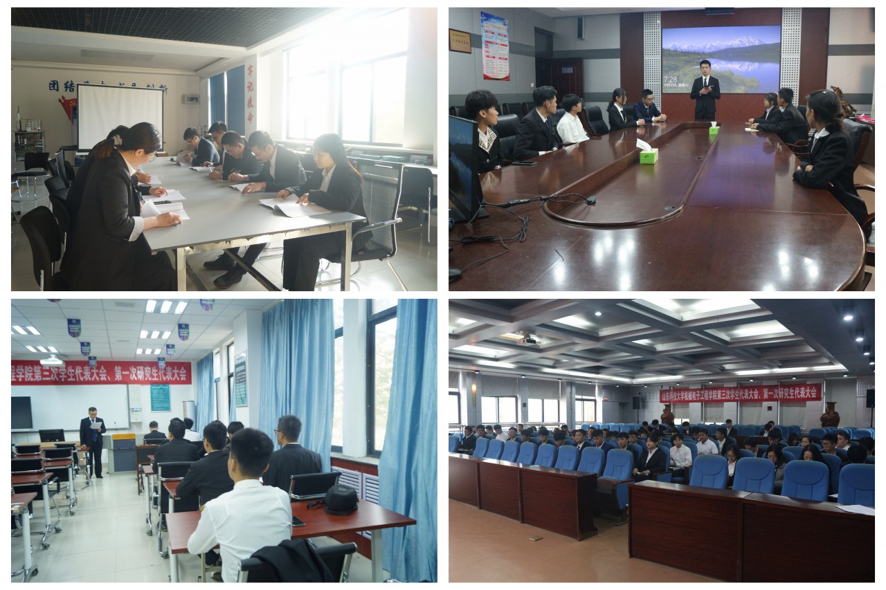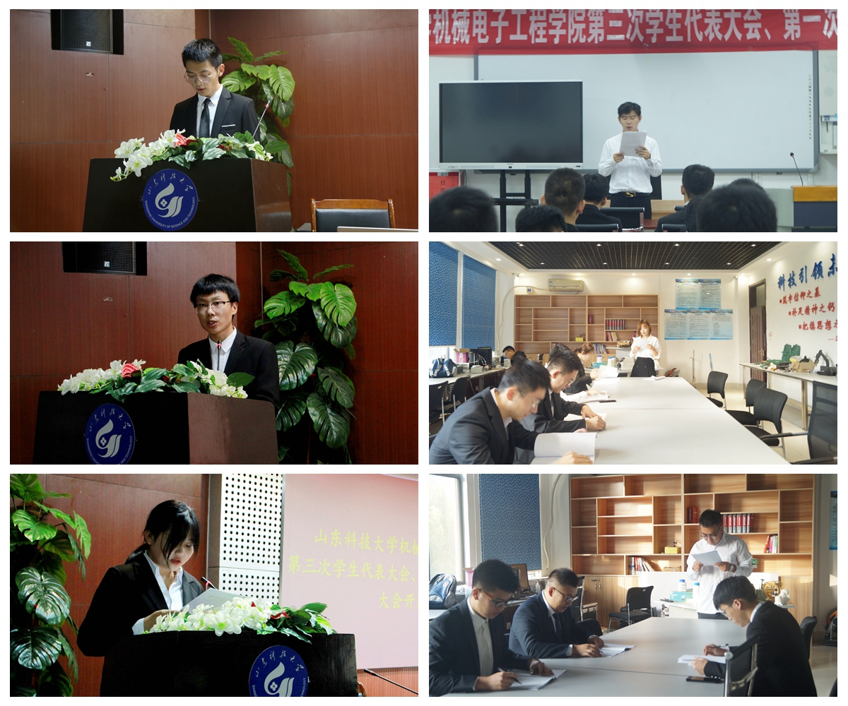 程龙作捷报即时比分 学生会工作报告;郭雷作捷报即时比分 研究生会工作报告;王金峰宣读《关于<山东科技大学机械电子工程学院学生会章程>(修正案)的说明》;石兆婷宣读《山东科技大学机械电子工程学院研究生会章程(草案)》;许楠作《山东科技大学捷报即时比分 第三次学生代表大会提案工作报告》;刘国庆作《山东科技大学捷报即时比分 第一次研究生代表大会提案工作报告》。