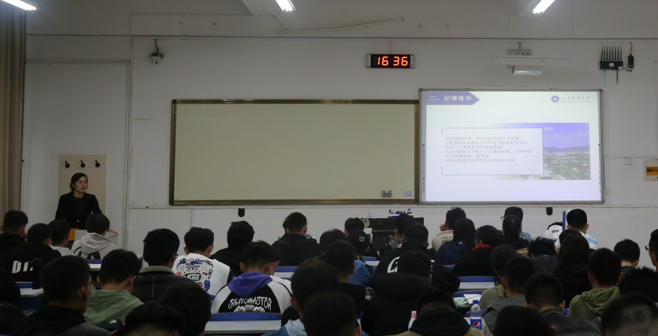 点击:10月27日下午,捷报即时比分 在J14-205举办学生干部培训班第四期讲座。学生工作部教育管理科科长李莉老师应邀担任主讲人,捷报即时比分 辅导员杨治宽老师出席培训并主持,各年级团支书、班长、副班长及学习委员参加了此次培训。 培训过程中,李莉围绕学校的规章制度向同学进行讲解,根据各种奖惩规则重点解释了部分重要的校规校纪,就班级评优与奖学金评定阐述了违反校纪校规对大学生活与学习的影响,通过讲述了多个生动形象且具有说服力的实例,使得同学们充分认识到遵纪守法的重要性和必要性,为日后成为一名德智体美劳全面发展的文明大学生打下坚实基础。 课程中,同学们用心倾听,积极互动,在轻松愉快的氛围中接受校规校纪教育。此次活动提高了学生干部对校纪校规的认识,进一步开拓工作创新性思维。(通讯员:廖思懿 摄影:殷允浩)