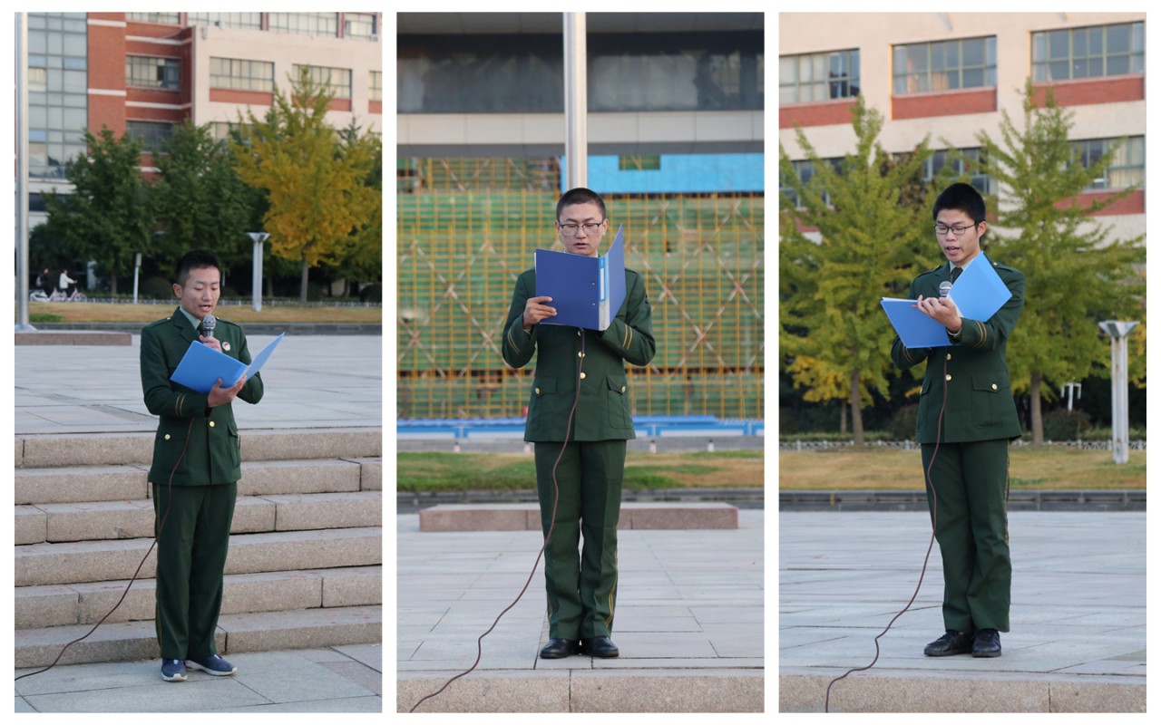 退伍义务兵代表田史琳、王凯、季明明做国旗下的讲话,回顾军旅岁月,表达对抗美援朝战士的崇高敬意和保家卫国的坚定信念。全体师生合唱《我的祖国》,深情纪念在抗美援朝战争中为祖国和平稳定无私奉献和英勇献身的中华儿女。随后,全体师生在“铭记峥嵘岁月 传承伟大精神”条幅上签字留言,深切表达浓厚的爱国热情。