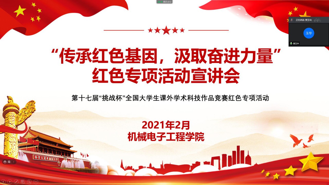点击:为迎接中国共产党建党100周年,传承红色基因,引导学生在实践中接受红色教育,2月20日,捷报即时比分 积极响应“挑战杯”竞赛组员会和学校的号召,举办了“传承红色基因,汲取奋进力量”红色专项活动宣讲会。捷报即时比分 团委书记樊玉华,团委老师王玉鹏出席了此次会议,全体团支部书记及各社会实践项目负责人参加,宣讲会由团委老师苗成旭主持。