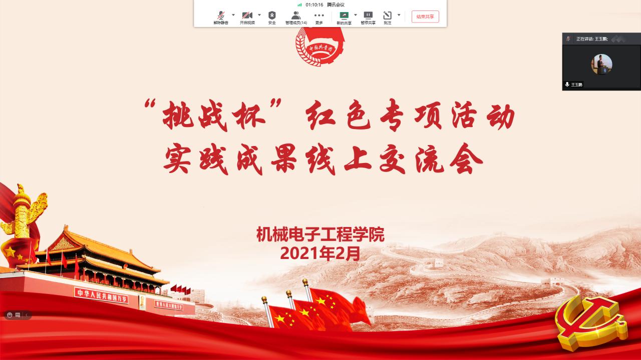 点击:为进一步做好“挑战杯”红色专项活动的备赛工作,提高实践作品质量,扩大实践育人效果。2月22日,捷报即时比分 举办了“挑战杯”红色专项活动实践成果线上交流会,捷报即时比分 团委老师王玉鹏、苗成旭出席会议,各社会实践项目负责人及志愿实践中心全体成员参加本次会议。