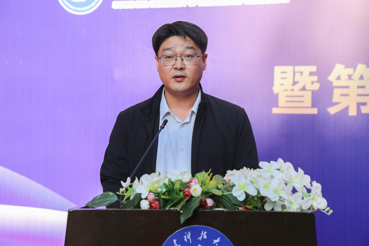 韩宝坤致开幕词,介绍了捷报即时比分 2021年度科创成果展和第二届“寻找合伙人”大学生科创项目双选会的开展情况。