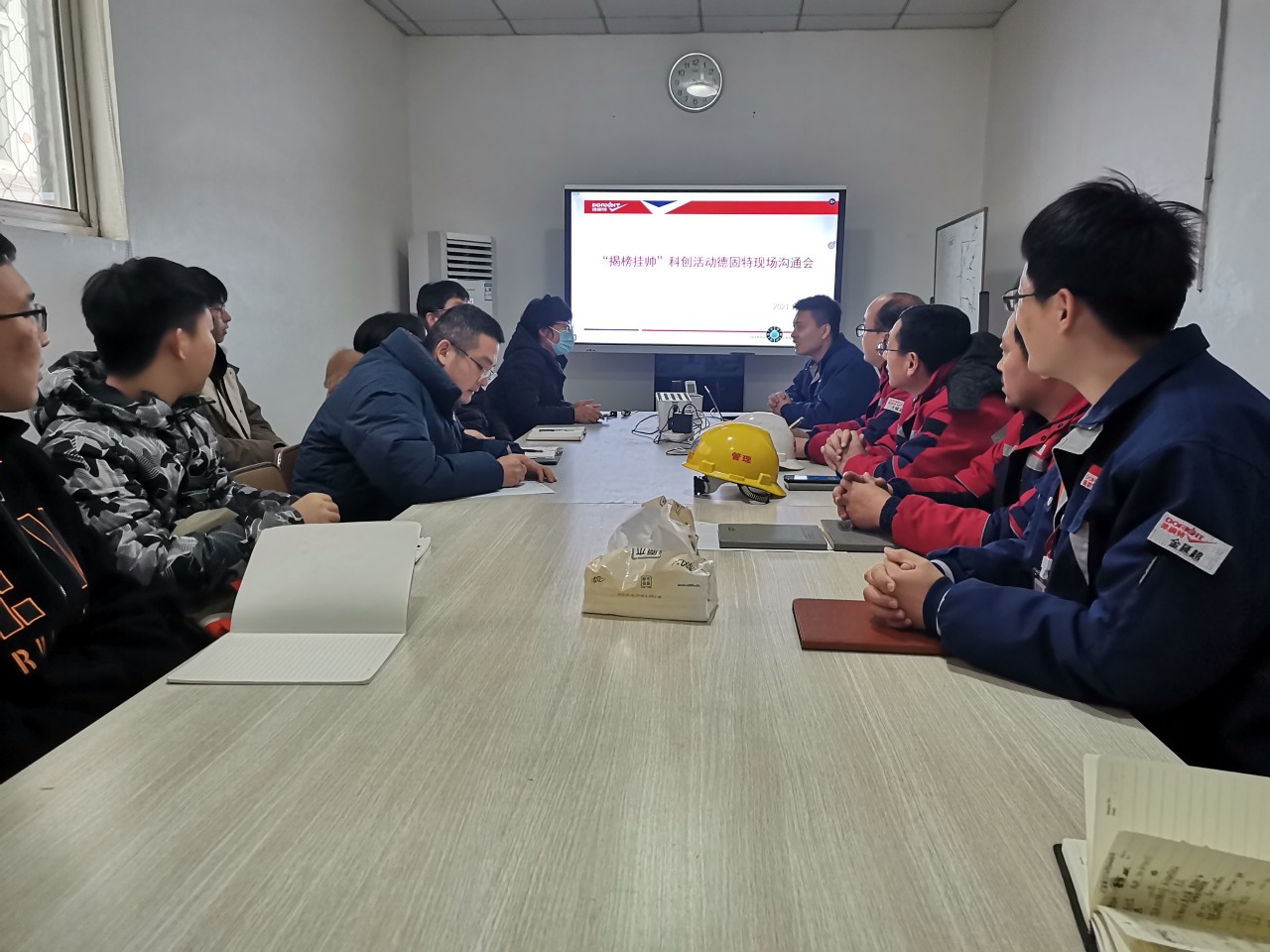 交流会上,企业工艺工程师尤继录介绍了“揭榜挂帅”项目具体要求,校企双方对具体研发过程中的要点和难点进行了技术交流。会后,企业负责人带领“揭榜”师生进入生产现场参观考察,“揭榜”师生根据现场设备运行状况、围绕生产技术和参数等提出了项目设计框架。