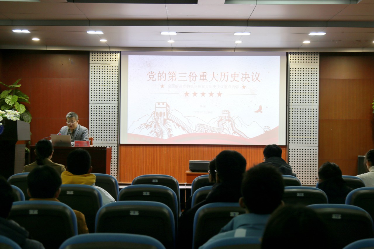 陈猛为学员代表赠送学习材料,并以《党的第三份重大历史决议》为题为学员讲授培训班第一课。陈猛从决议起草过程、制定历史决议的必要性、决议的主要内容、决议的历史意义等四个方面带领同学们解读了党的第三份重大历史决议的重点内容,阐述了决议所具有的联系人民命运、体现道路选择、总结历史、面向未来、映射中华民族复兴伟业政党强烈责任与担当的重要意义。最后,陈猛表示,希望同学们端正态度,不断学习,提高思想理论水平,做一个优秀的青年马克思主义者。