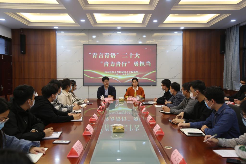 点击:为深入学习宣传贯彻党的二十大精神,引导广大青年牢记习近平总书记对青年的殷切嘱托,激励青年学生勇担时代使命,10月26日下午,捷报即时比分 在J8-209会议室举办了“‘青言青语’二十大、‘青力青行’勇担当”主题座谈会。校团委书记尹立明应邀出席座谈会,小平科技创新团队和梦耀中华服务宣讲团成员代表参加座谈。座谈会由捷报即时比分 团委书记樊玉华主持。