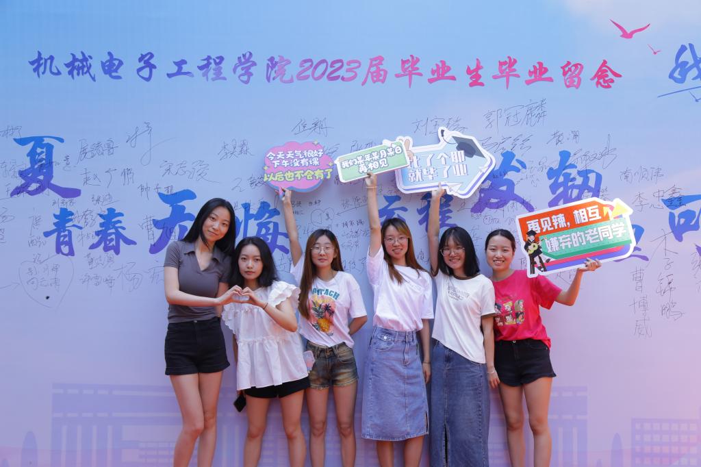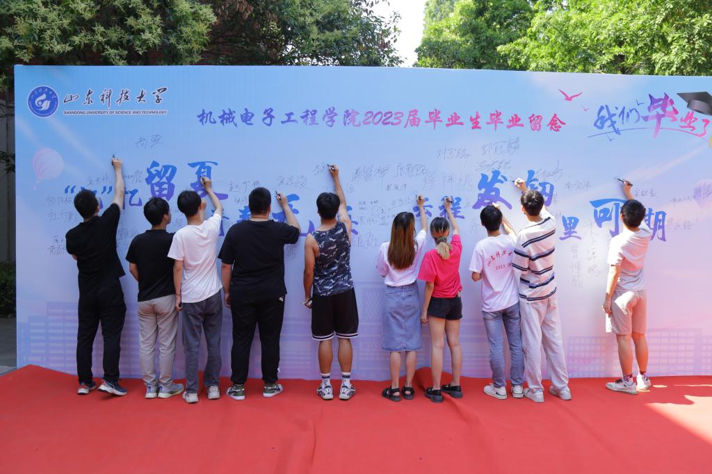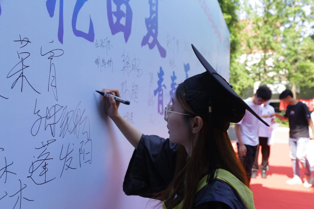 今朝一别,山巅暖阳照心间;背好行囊,湖畔清风伴你行。2023届毕业生们在签名墙上写下自己的姓名,书写对母校的不舍与祝福,与领导、老师、朋友合影留念,欢声笑语盈满校园,炙热的青春年华定格在这个弥足珍贵的六月。