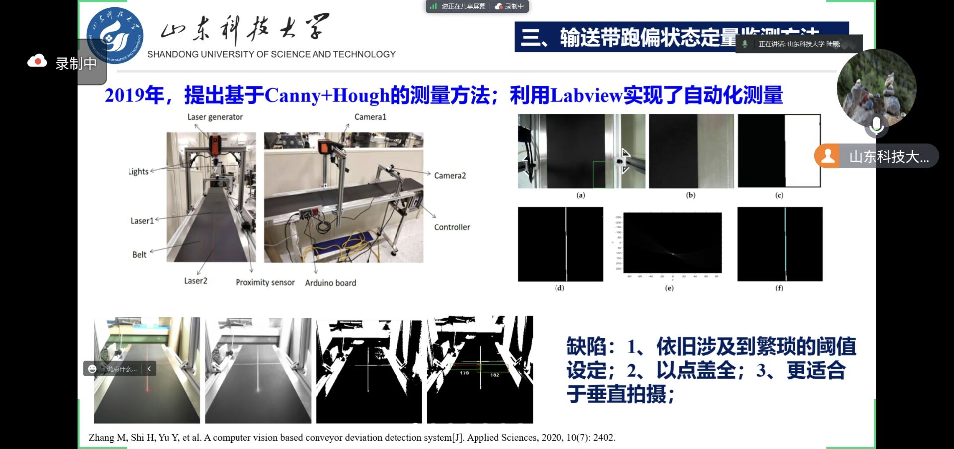 活动伊始,陆嗣介绍了“青连学子齐奋进 党团联建促发展”第二期联建活动的开展情况,并对本次活动的主要内容进行了简要介绍。随后,山东科技大学捷报即时比分 小平科技创新团队党支部张梦超同志以《带式输送机多运行状态智能可视化监测技术研究》为主题,围绕课题背景、技术发展历程、输送负载量非接触式测量方法和输送带跑偏状态定量监测方法等内容进行了科研分享,并结合自身科研经历勉励同学们:“做科研要坚持问题导向、需求导向、解决实际问题;要动手,勤思考,善总结;不要过分相信参考文献中的数据,只有在实践的过程中,才能弄通做实,发现真问题,进而解决问题”。