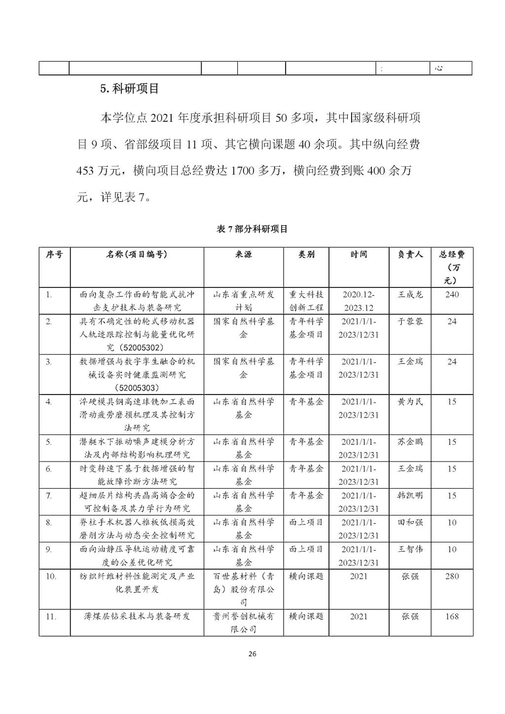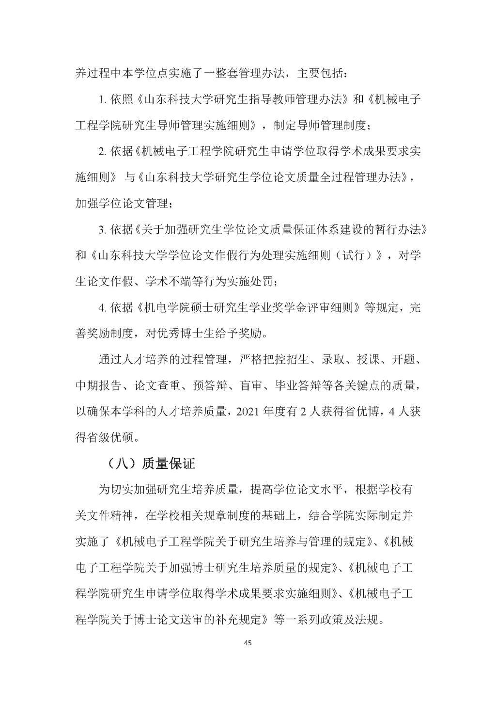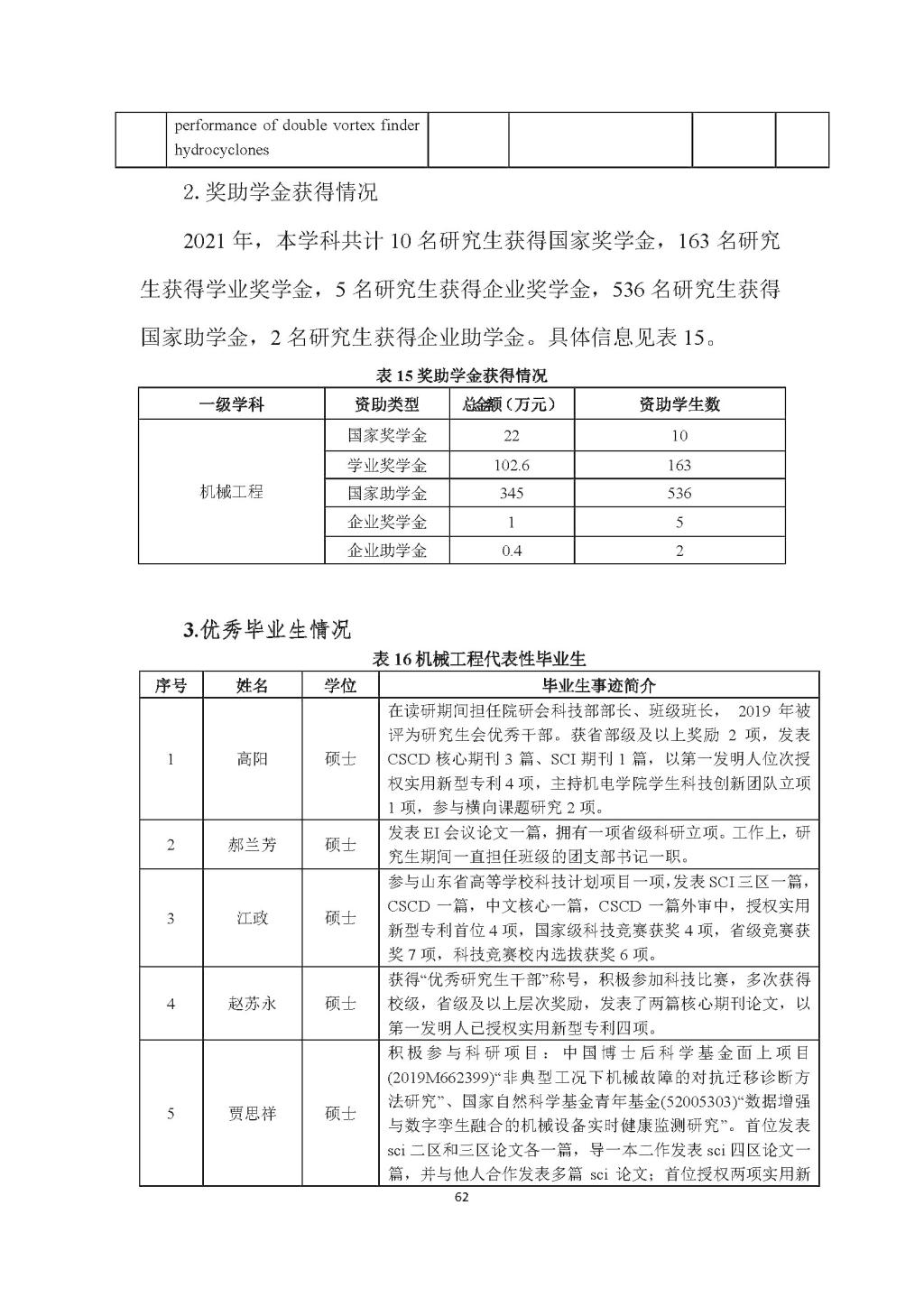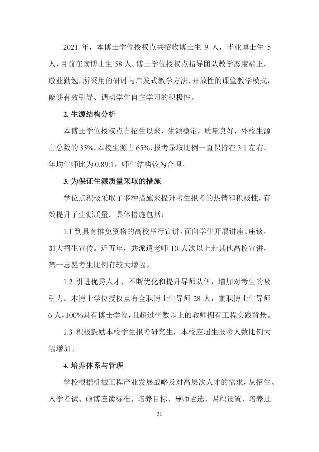 机械工程一级学科博士学位授权点2021年建设年度报告