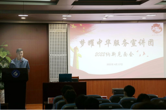 点击:为了激发同学们参与社会实践的积极性,树立“在实践中奉献”的观念,4月17日-18日,捷报即时比分 梦耀中华服务宣讲团于学院楼报告厅举办2022年纳新见面会。捷报即时比分 团委老师苗成旭,梦耀中华服务宣讲团2019级队长杨忠源、刘璐璇出席会议。