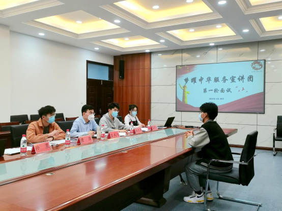 随后,60名同学进行第一轮面试,他们依次进行自我介绍,表达自己想要在社会实践中服务奉献的决心,同时,面试官们也与同学们就社会实践等问题进行交流探讨。